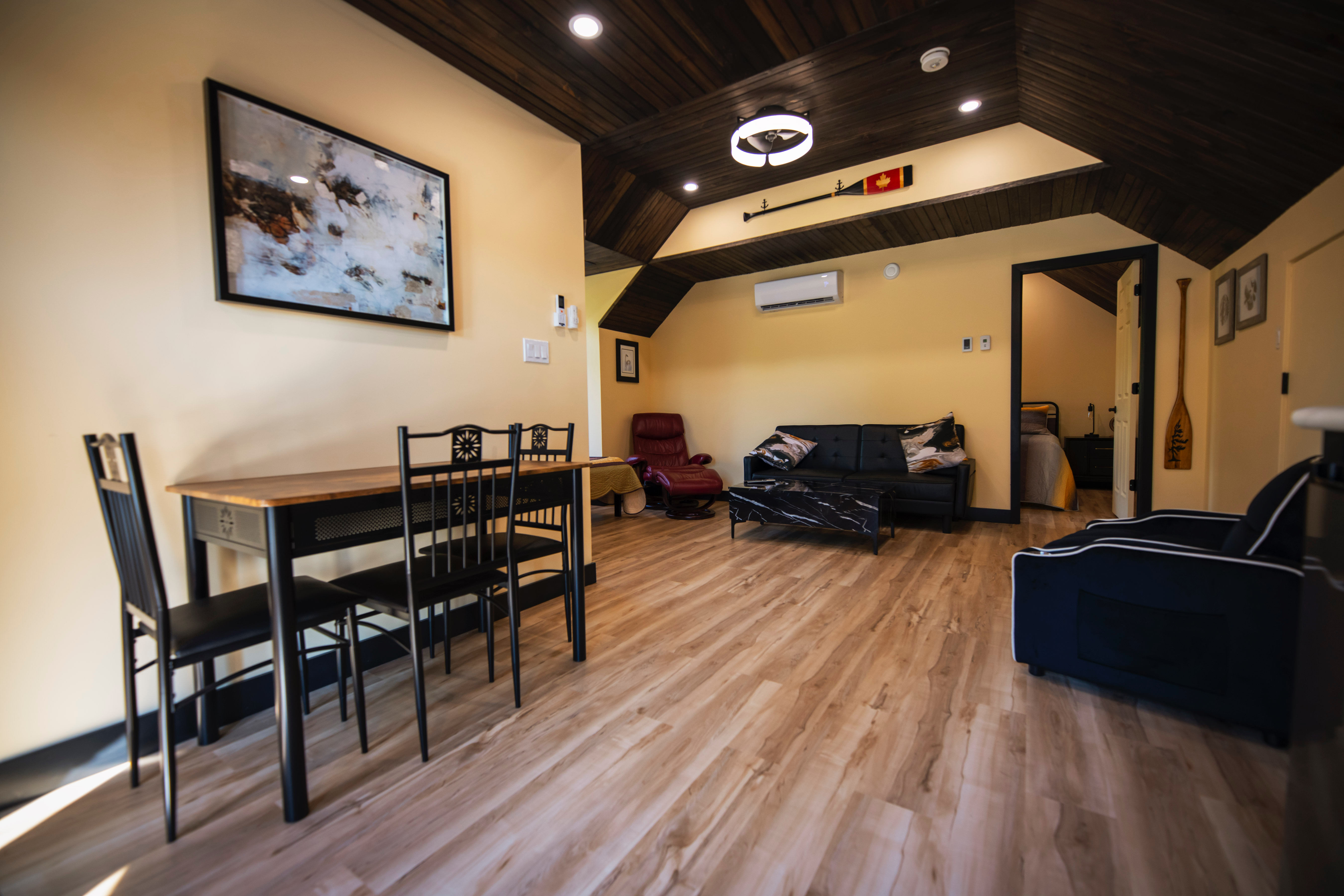 Open living area: Queen pullout couch + Queen bed-in-a-box